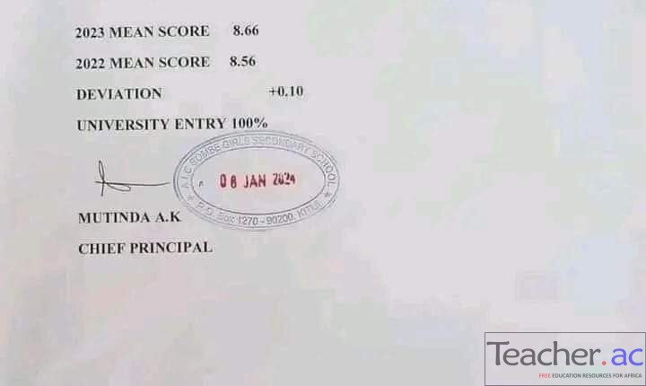 A.I.C Sombe Girls High School KCSE 2023 Results Summary |