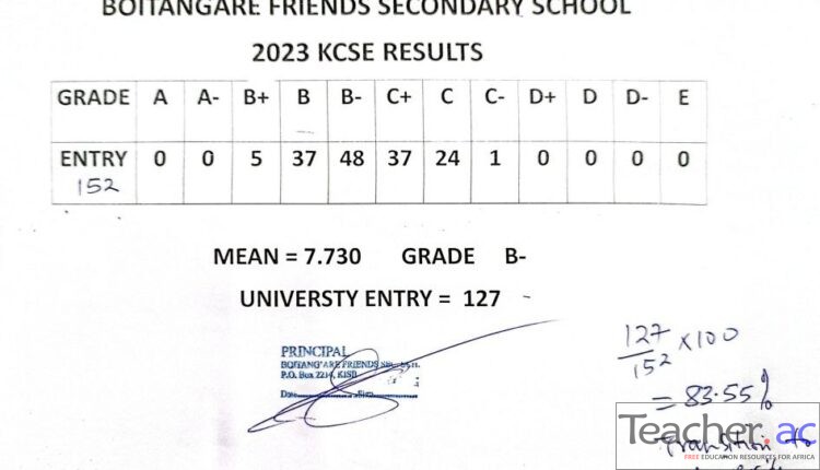 Boitangare Friends Secondary School 2023 KCSE Results Analysis/caption]Boitangare Friends Secondary School 2023 KCSE University Pass Rate