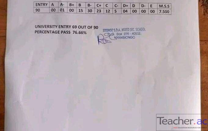 According to the results shared by Eronge SDA Secondary School, they had a total of 86 candidates sitting the exam.