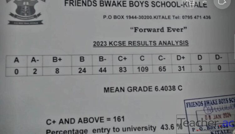 Friends Bwake Boys School – Kitale KCSE 2023 Results Summary |