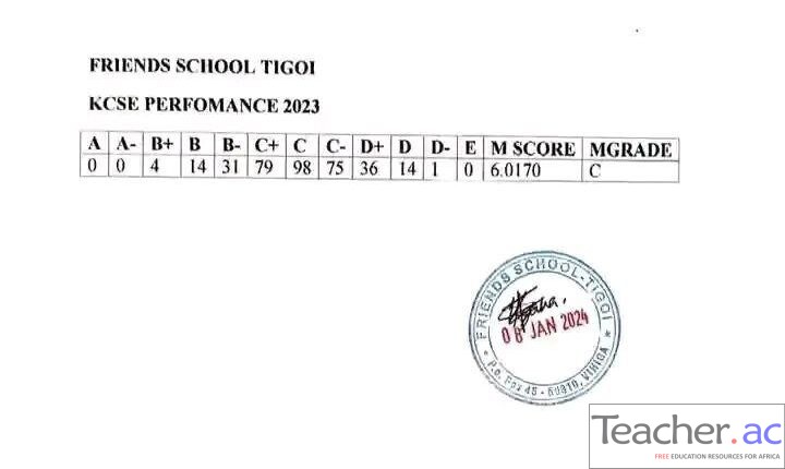 Friends School – Tigoi KCSE 2023 Results Summary |