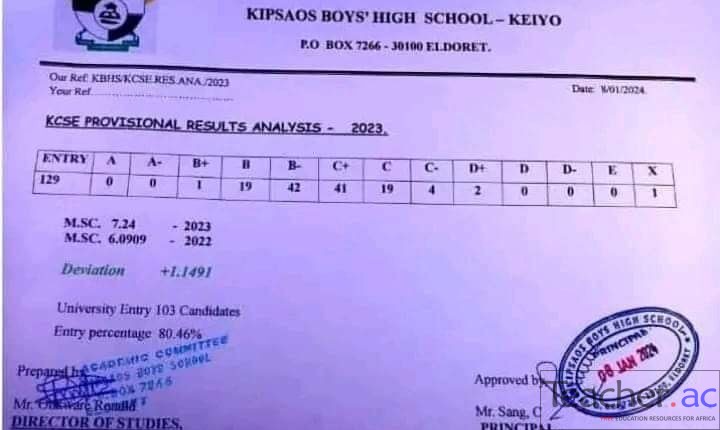 Kipsao’s Boys High School KCSE 2023 Results Summary |