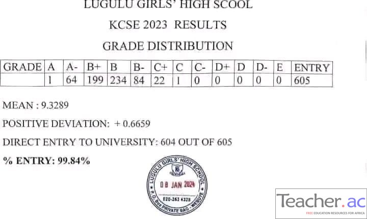 Lugulu Girls High School KCSE 2023 Results Summary |