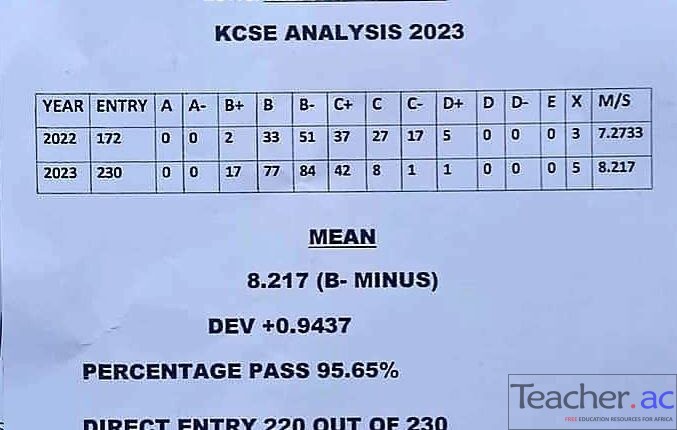Out of the 230 candidates from the school who sat for the 2023 KCSE examinations, 220 of them managed the KUCCPS university direct entry of C+ (plus) and above.