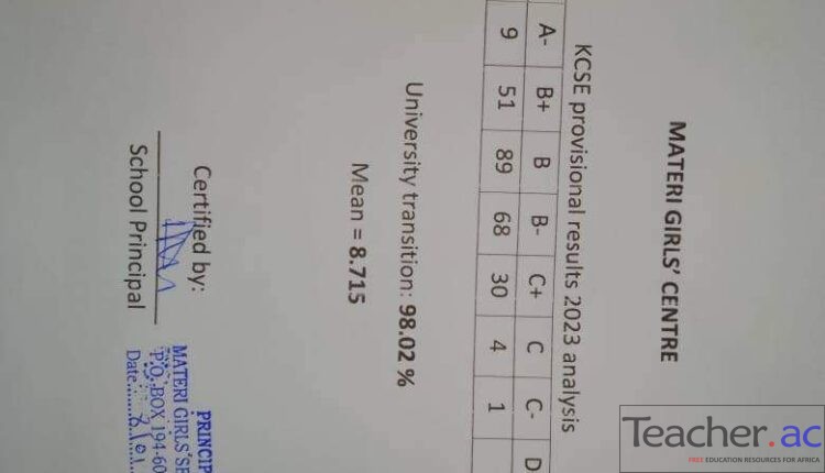 Click HERE to Check the latest Materi Girls centre 2023 KCSE Results