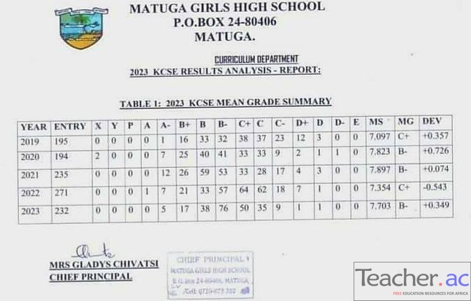 Matuga Girls High School KCSE 2023 Results Summary |