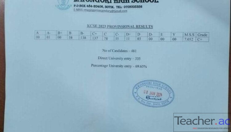 Click HERE to Check the latest Mwongori High School 2023 KCSE Results