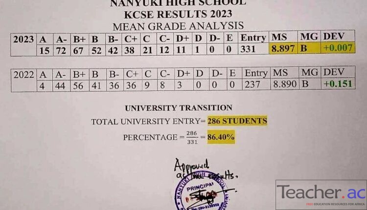 Nanyuki High School 2023 KCSE Results Analysis/caption]Nanyuki High School 2023 KCSE University Pass Rate