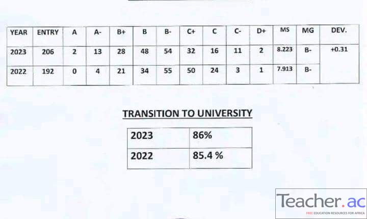 Out of the 206 candidates from the school who sat for the 2023 KCSE examinations, 177 of them managed the KUCCPS university direct entry of C+ (plus) and above.