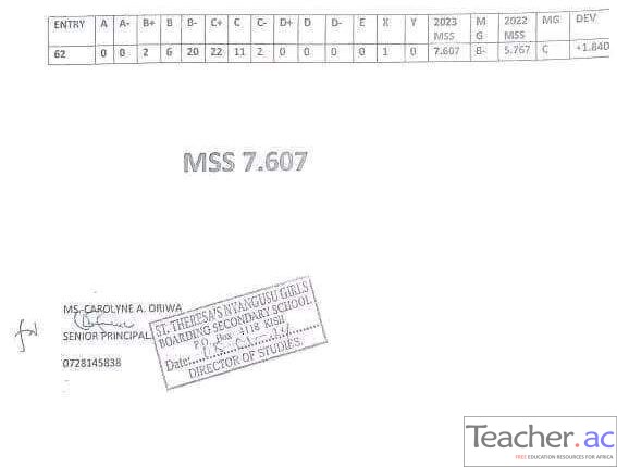 St. Theresa's Nyangusu Girls Secondary School KCSE Results Analysis 2023 St. Theresa’s Nyangusu Girls Secondary School 2023 KCSE Results Analysis/caption]