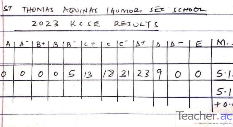 Click HERE to Check the latest St Thomas Aquinas Igumori Secondary School 2023 KCSE Results